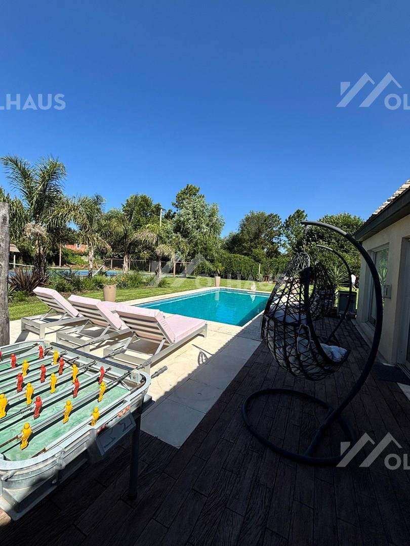 CASA ÚNICA EN BARRIO CERRADO PILAR PRIVADO , cancha de tenis profesional, sauna , hidromasaje, pileta climatizada, a tan solo 500 metros de Panamericana Pilar km 47, sobre calle Chile. Impecable ubicación , todos los medios de locomoción a un paso, cerca de polo gastronómico, circuito bancario y comercial. Desarrollada sobre un lote de 2.700 m² , 400 m² totales construidos, es ideal para familias que buscan confort, diseño y una excelente calidad de vida, en un entorno tranquilo y seguro. Desarrollada en dos plantas con un diseño funcional y moderno. PB Hall de recepción, living comedor de doble altura, con grandes ventanales que aportan luz natural y vistas abiertas hacia la zona de relax y entretenimiento. El comedor independiente se integra con una cocina canchera y moderna , equipada con una gran barra, ideal para quienes son amantes de la gastronomía y los encuentros con familia y amigos. Familly o lugar de estar súper cálido con biblioteca empotrada, amplios espacios de guardado y sistema de audio y televisión, todos los ambientes te invitan a disfrutar con espacios muy bien resueltos ,ventanales de buen porte que conectan con la galería cubierta y vista al jardín de parquizacíón impecable. Acceso interno a dos dormitorios con placares, que comparten un baño. Dependencias y lavadero, doble parrilla ( interior y exterior), sector de barra exterior, gran pileta con sistema de calefacción y cancha de tenis iluminada. PÁ: Master suite , con terraza . con vistas al espectacular jardín y una suite Junior. Dos grandes diferenciales de esta propiedad: Uno es su sector de relax y entretenimiento, completamente integrado al jardín mediante amplias puertas ventanas. Aquí se destaca una parrilla interior con cerramiento en acero inoxidable, barra, sector con pisos especialmente diseñados para aparatos de gimnasio, área de estar con sillones y un espacio independiente que te invita a relajarte con hidromasaje y sauna. En el exterior, un espacio pensado para disfrutar todo el año: Pileta con sistema de calefacción, solarium y un sector recreativo con quincho de estilo rústico, barra y espacio ideal para reuniones sociales al aire libre. La galería cubierta con parrilla, con acceso directo al family, se complementa con un fogonero, generando distintos ambientes para compartir. El paisajismo cuidadosamente diseñado permite sectorizar la zona de pileta y solarium, integrando de manera armónica el segundo gran diferencial de ésta casa, su cancha de tenis de cemento con medidas profesionales, iluminada, ideal para los amantes de este deporte y para practicar en cualquier horario. En PB pisos de madera y en PA pisos flotantes americanos , calefacción por losa radiante, caldera dual más calefón, aires acondicionados en todos los ambientes, sistema de audio Marantz en el interior y sistema Bose para el exterior, jardín y cancha de tenis. Riego por aspersión. Garage cubierto para 4 autos. Una casa que combina confort, funcionalidad y espacios únicos, pensada para disfrutar , en un entorno seguro y rodeado de verde. El barrio totalmente consolidado con amenities, sum, gimnasio, sauna, pileta, cancha de futbol. Digna de ver, estas a solo un llamado para que sea tuya Contáctanos para más información y agenda una visita. Martillero y corredor Publico Inmobiliario Maria S, Vilariño CSI 6726. Todas las propiedades son tasadas bajo normas establecidas en la ley. La intermediación y la conclusión de las operaciones son actividades exclusivas de este matriculado. ........... Todas las propiedades son tasadas bajo normas establecidas en la Ley. La intermediación y la conclusión de las operaciones son actividades exclusivas de estos matriculados.
